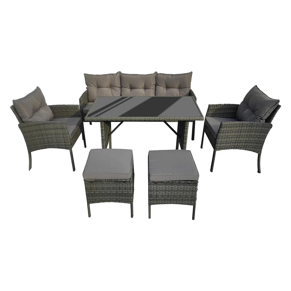 8 Seater Garden Sofa Furniture Set with Chair, Stool and Dining Table (6141-B)