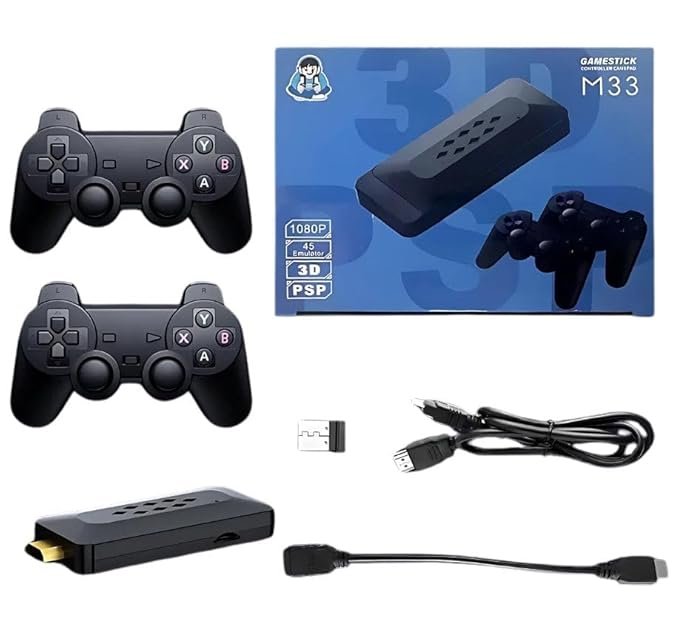M33 4K HDMI Gaming Stick with 33,000 Games & Dual 2.4G Wireless Controllers