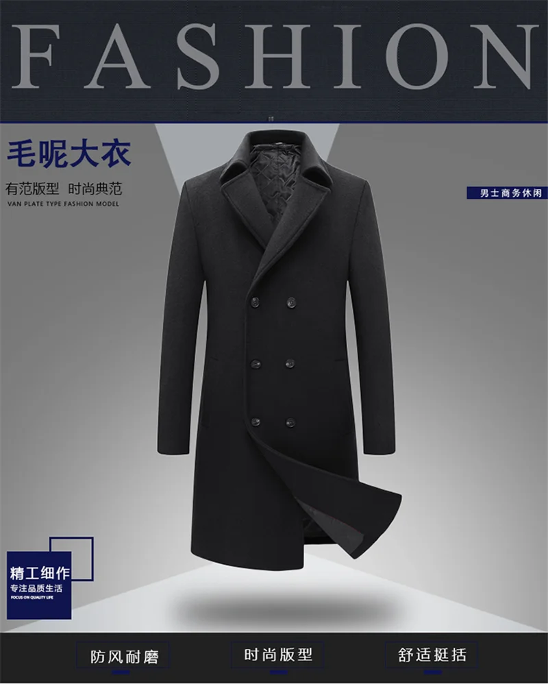 Mens Overcoat Winter Wool Coat Slim Fit Jackets Fashion Outerwear Warm Man Casual Jacket Overcoat Pea Coat Plus Size M-4XL