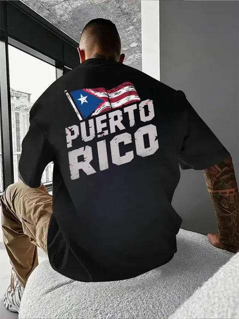 100% Cotton Puerto Rico flag T Shirt Short Sleeved